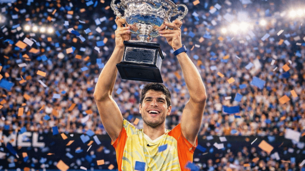 Carlos Alcaraz defeats Djokovic to win the 2026 Australian Open. Read about his historic Career Grand Slam achievement and what this means for tennis...
